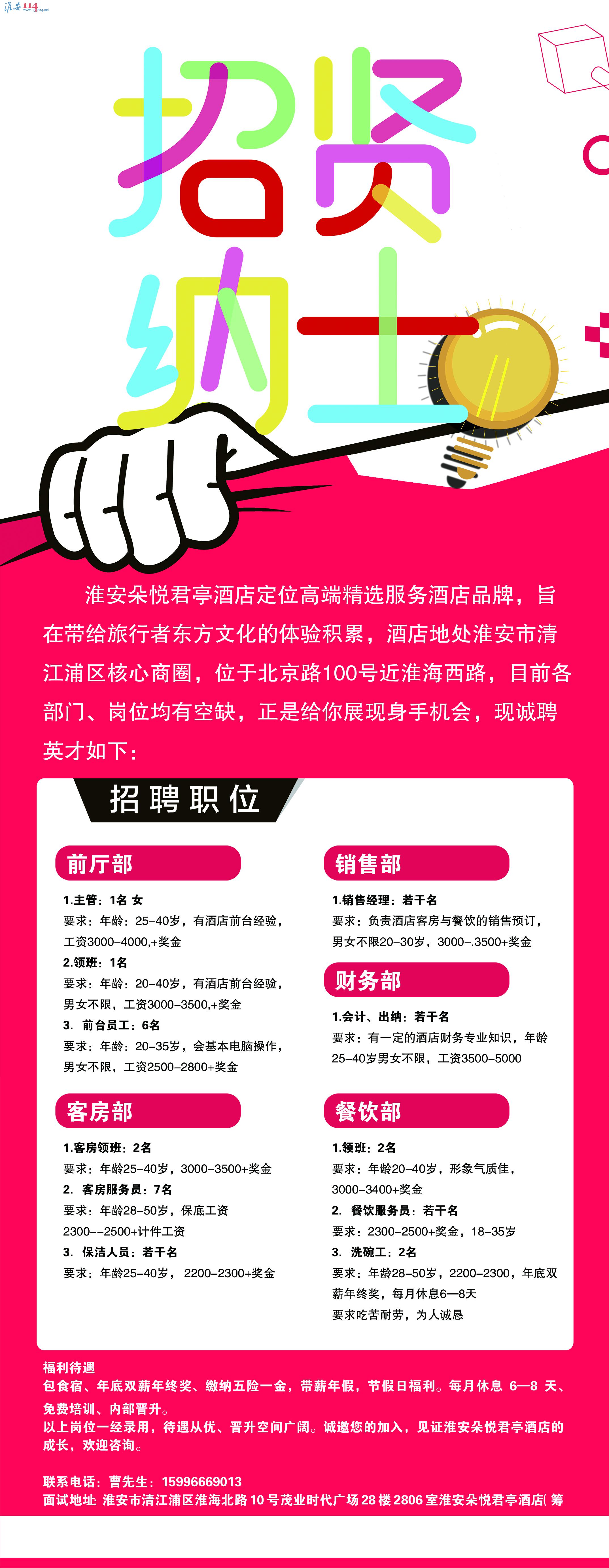 淮安朵悅君亭酒店招人啦。。
